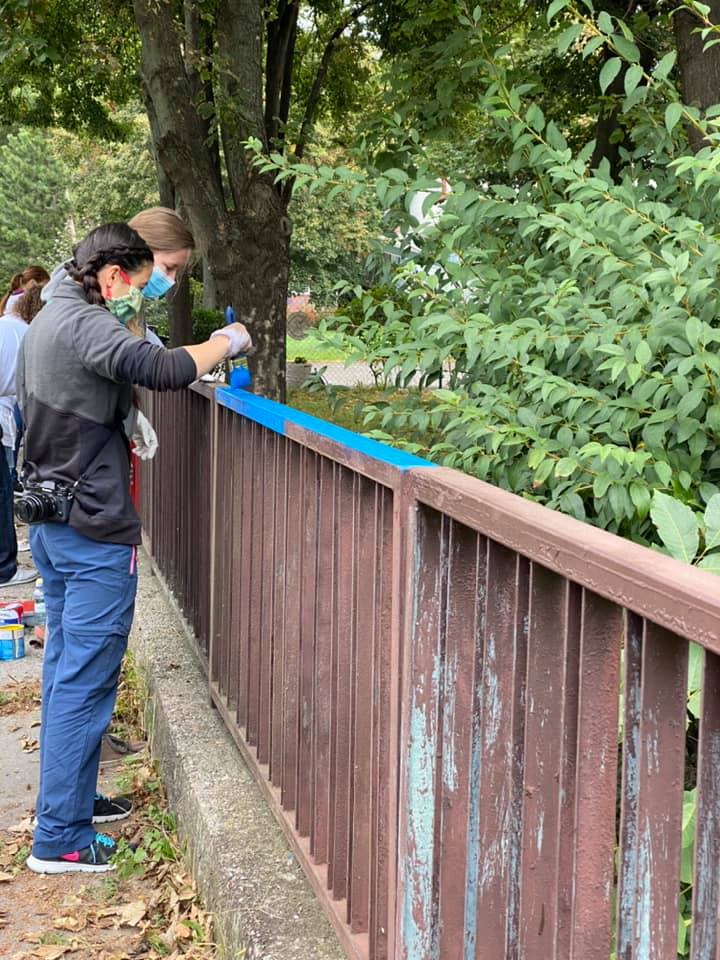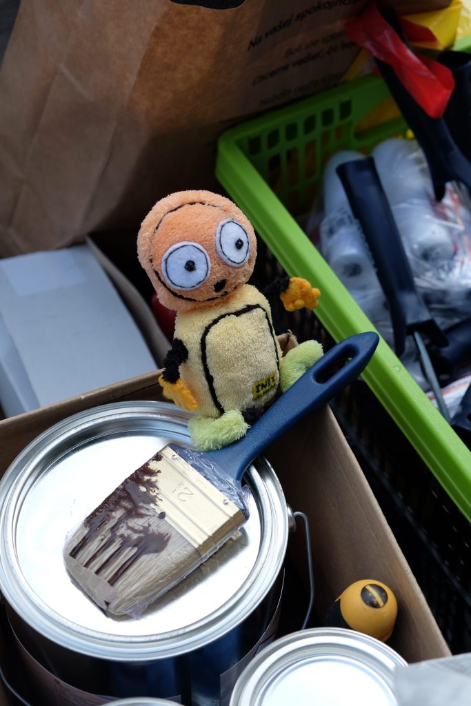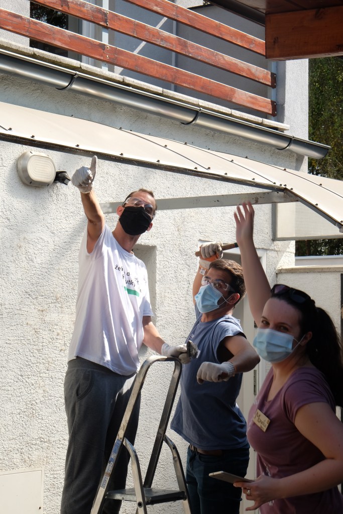 So if you didn’t know it happens that there are special events inviting the local people to volunteer. It was the case for Naše město (“Our City”) and Týždeň dobrovoľníctva (“The volunteering week”). We took part in these two events with the goal to help the local community or a non-profit organization. We met people who were volunteers for a day with us. We made a colorful fence for a kids school, also we did some cleaning and gardening at Inex.