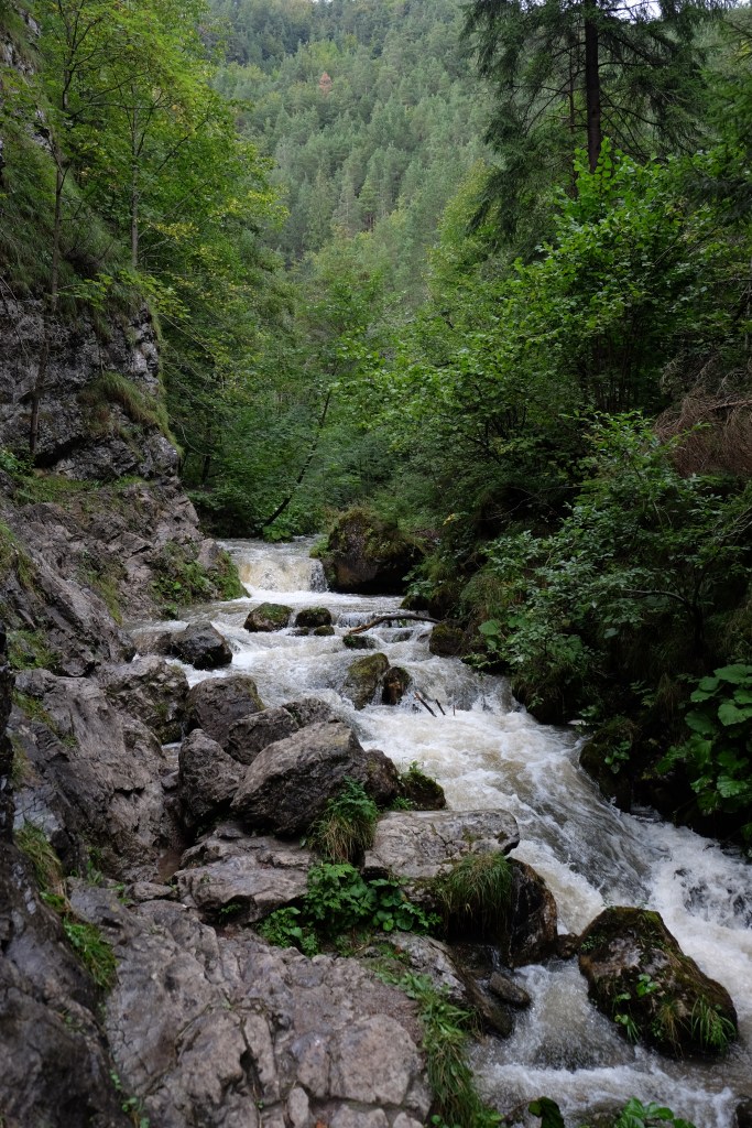 When I saw the river I was already super happy to listen to the water lapping. I crossed a few wooden bridges, walked in this muddy path, not worrying about what could come next. And came what was supposed to come : the river crossing without any bridge, only with a kind of rock path. Well, during a sunny day, I walked on a similar path in the Slovak paradise hike. But this time, the weather didn’t help. The river’s current was really strong. I couldn’t imagine myself falling from the slippery rocks and being swept away by the river. I stared at the torrent for a moment, a little bit fascinated by the strength of the water.